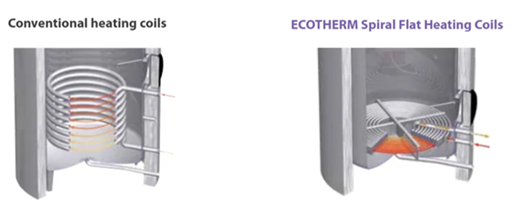Comparison between Spiral Flat Heating Coils and Conventional heating coils in Hot Water Tanks