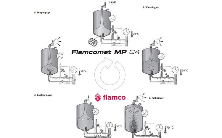 The Flamcomat MP G4 pressurization and degassing solution for Chiller and Heating systems from Flamco Netherlands offers the following exceptional advantages: